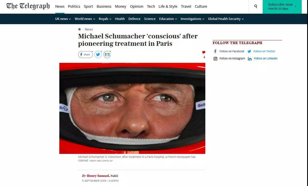 舒马赫已经恢复意识了!