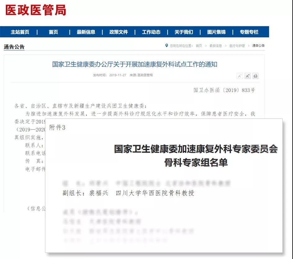 2019年11月15日,国家卫健委发布《加速康复外科试点工作方案(2019—2020年)》。将在全国推广加速康复外科诊疗模式,提高诊疗效果和医疗服务效率,提升医疗资源利用率,改善患者就医体验,进一步增强人民群众获得感。