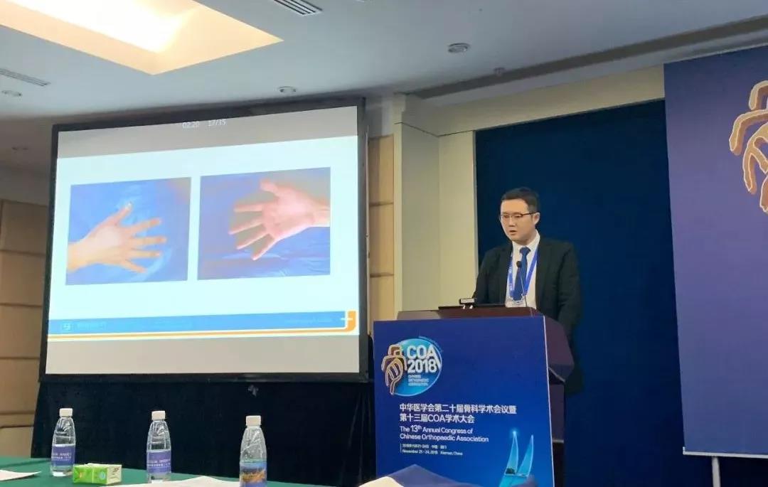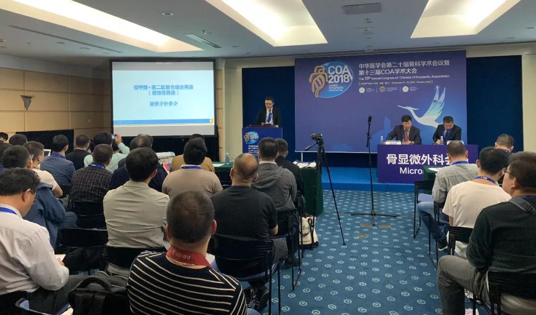 大会主办方精心筹办,骨科同仁齐聚一堂。国内外最顶尖医师以大会发言、专题研讨、病例讨论、手术演示及壁报展示等多种交流形式,集中展示了我国骨科过去一年最新技术与研究进展。22日下午,曙光医院骨一科邓名山主任在骨显微外科会场上发言,邓主任对三种不同方法的足趾及足趾复合组织在拇指Ⅲ、Ⅳ度缺损再造中的应用(其中第二足趾再造(14例)、母甲瓣+第二趾复合组合再造(10例)、全形再造(8例))进行了精彩的演讲,展现了曙光医院在骨显微外科领域所做的努力和取得的成果。邓主任的发言赢得了骨科同仁们的阵阵掌声和赞许。