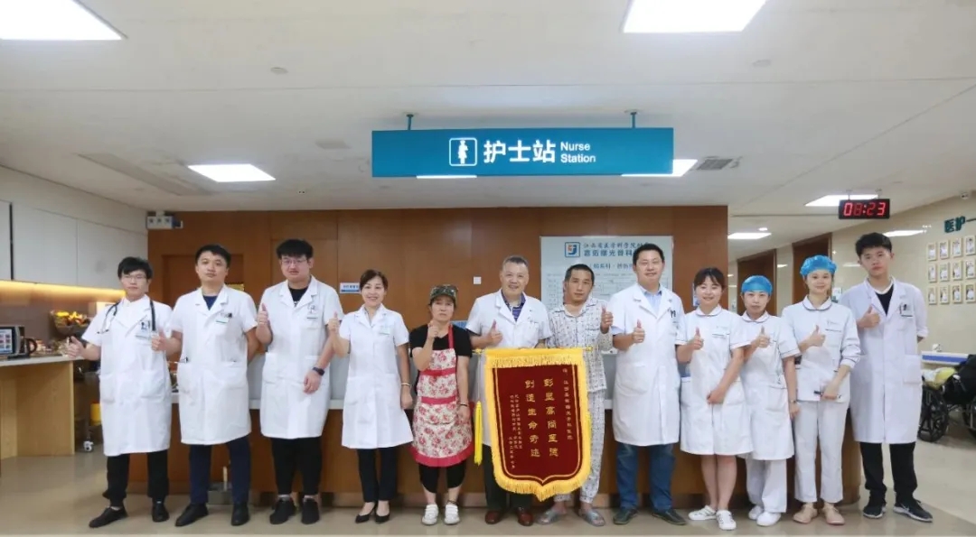 经过30多天的精心救治和护理,7月6日,脑系科病友易先生在医院的护送下康复出院。临走时,他向钱锁开博士团队赠送锦旗表示感谢。