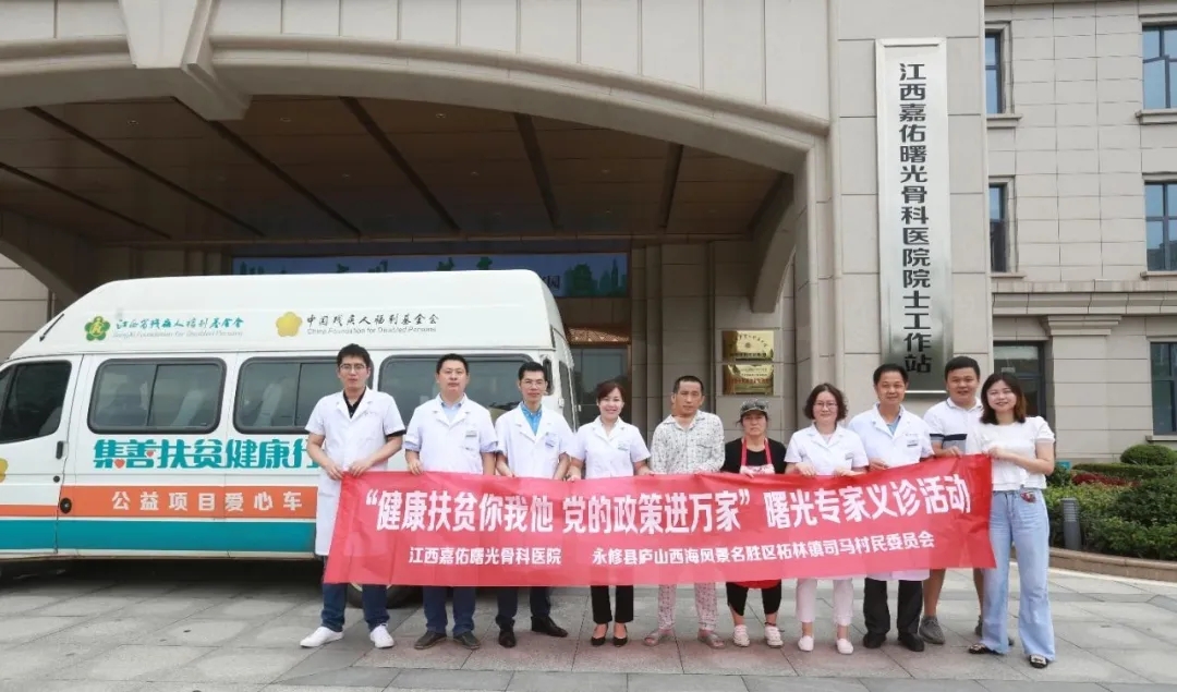 为了帮扶更多像易先生这样因病致贫、因病返贫的家庭,给他们带去切实的医疗福利,嘉佑曙光骨科医院与司马村村委展开友好结对子公益项目,为村民送医送健康。7月6日上午,医院组织医疗专家团队以护送易先生回家为契机,在当地开展“健康扶贫你我他,党的政策进万家”免费义诊活动。