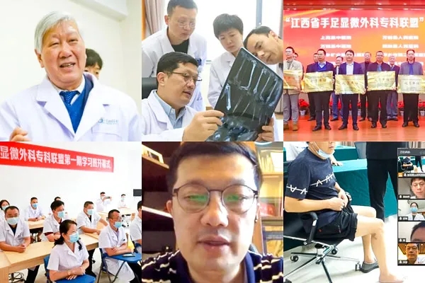 两年来,医院充分发挥院士及其科研团队的支撑带动作用,组织开展专家门诊、疑难病例查房、手术演示等临床科研实践,提升医务人员技术水平;医院定期派遣一线医护人员前往上海华山医院进修学习,培养医疗技术骨干;成立手足显微外科专科联盟,形成辐射全省的手足显微外科技术联盟网络,通过学术讲座和培训班等形式,进行技术帮扶,实现优质资源共享;克服疫情期间的困难,利用5G网络技术设立云课堂、云诊室,以线上直播和远程会诊的形式,建立学术上下游链接,促进交流分享学术成果。