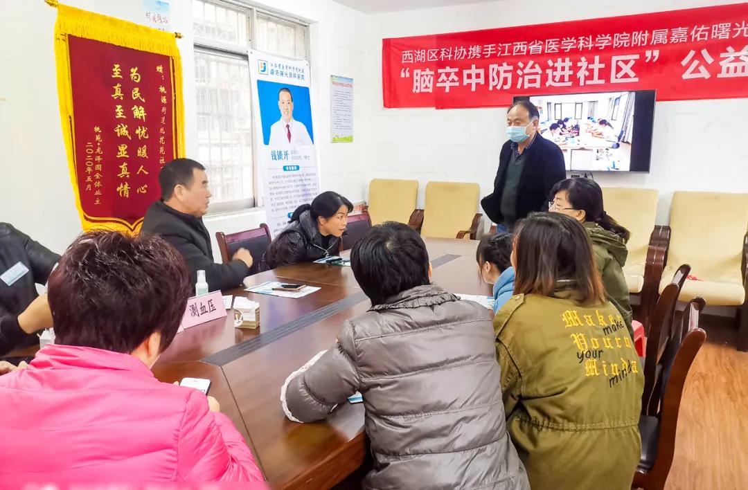 2020年10月29日是第十五个“世界卒中日”,主题是“医体融合,预防卒中”,口号是“科学运动、健康生活”。为贯彻落实《健康中国行动(2019-2030年)》有关要求,推进脑血管疾病科学防治工作,南昌市西湖区科协携手江西省医学科学院附属嘉佑曙光骨科医院共同开展了“脑卒中防治进社区”系列公益活动。