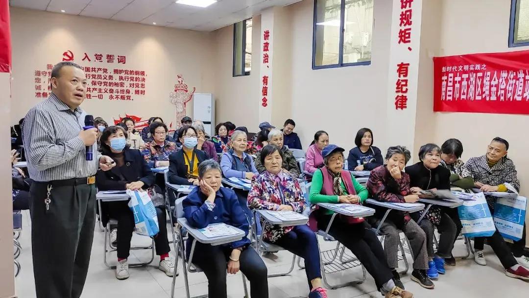 活动现场,曾获西湖区届人才表彰的神经外科专家、嘉佑曙光骨科医院脑系科学科带头人、江西省颅脑创伤治疗的领军人才钱锁开,为各社区居民送去了健康科普讲座。讲座主要围绕脑卒中的病因认识、风险因素管理、急救知识科普等方面展开。居民与专家互动积极,反应热烈。