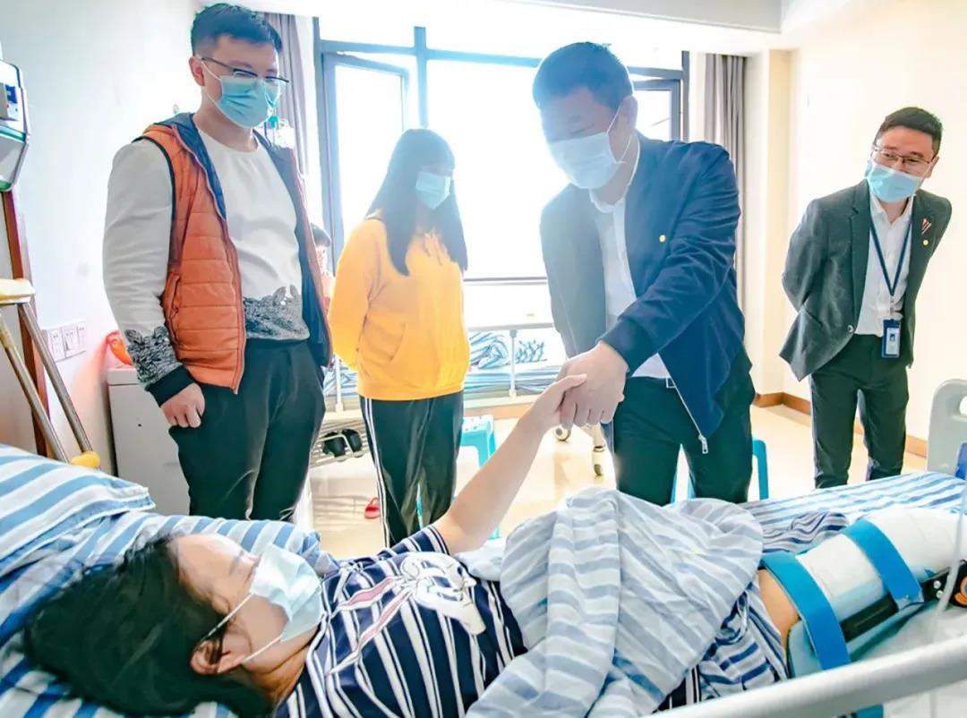 第四届客户节,太平洋产险江西分公司总经理助理杨学荣一行到医院看望事故伤者