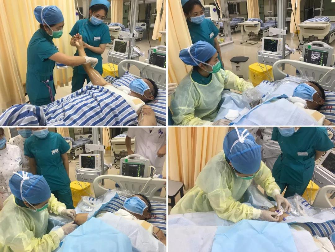 图为舒娟为患者实行超声引导下改良塞丁格PICC穿刺技术全过程